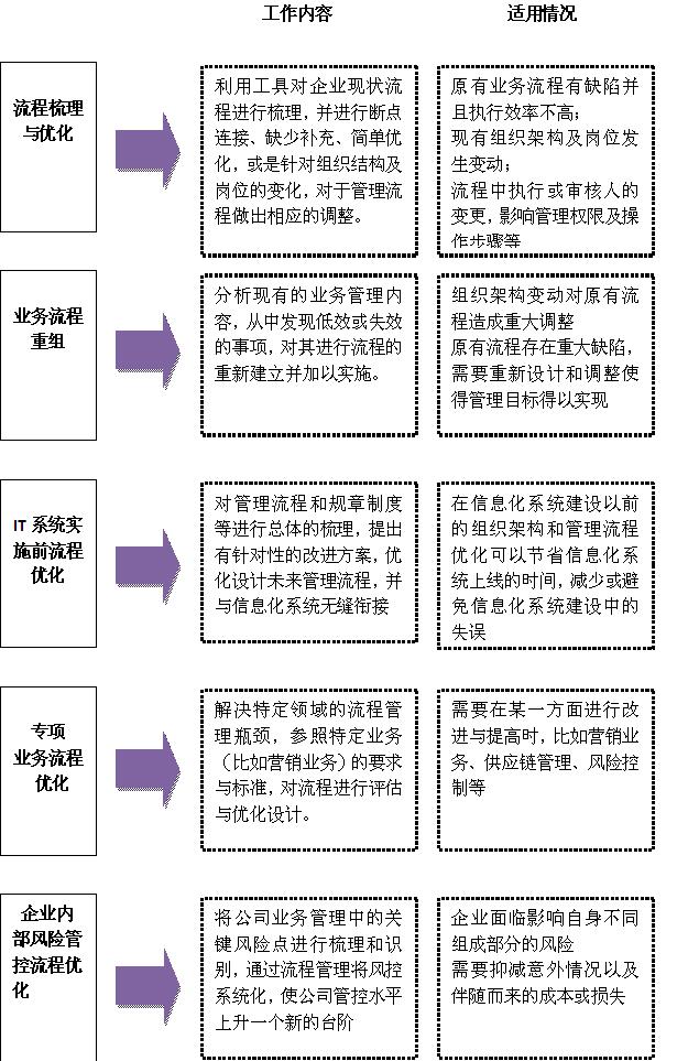 针对企业业务流程优化,正略咨询提供如下五类咨询服务: