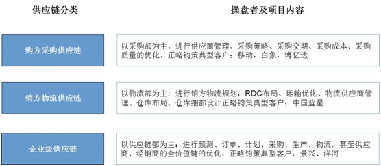 2.正略钧策专注在供应链体系建设上,包括订单、预测、计划、采购、生产、仓储、物流等各个环节,体系化的打造面向客户的快速反应供应链体系。